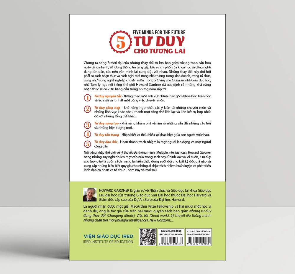 Nổi tiếng khắp thế giới về lý thuyết Đa thông minh (Multiple Intelligences), Howard Gardner nâng những suy nghĩ đó lên một cấp nữa trong sách này. Chính xác và lôi cuốn, 5 tư duy cho tương lai là cuốn sách mang lại kiến thức dùng suốt đời cho bất kỳ độc giả nào và cung cấp những hiểu biết quý giá cho những ai chịu trách nhiệm huấn luyện và phát triển lãnh đạo cá nhân và tổ chức – hôm nay và mai sau.